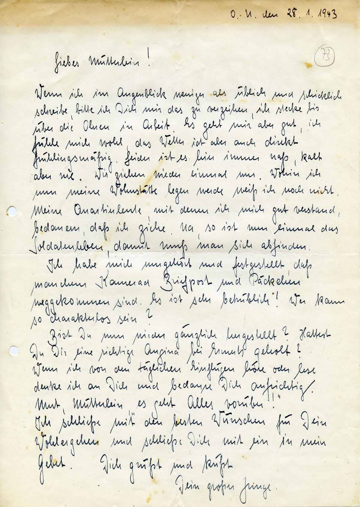 Rudolf Schmitz an Mutter Anna, 28. Januar 1943