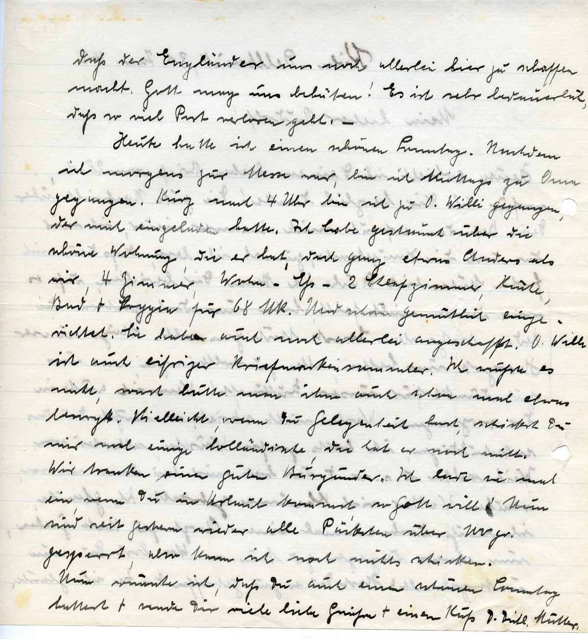 Nun wünsche ich, daß Du auch einen schönen Sonntag hattest + sende Dir viele liebe Grüße + einen Kuß. D. Dich l. Mutter.