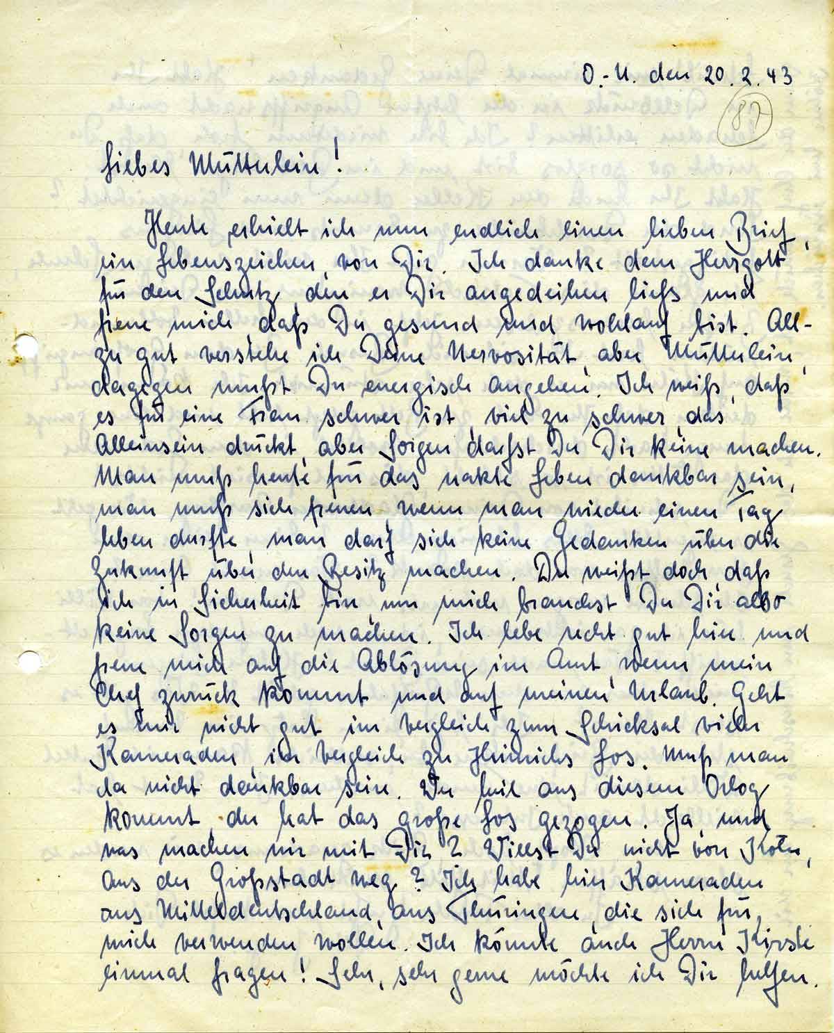 Rudolf Schmitz an Mutter Anna, 20. Februar 1943