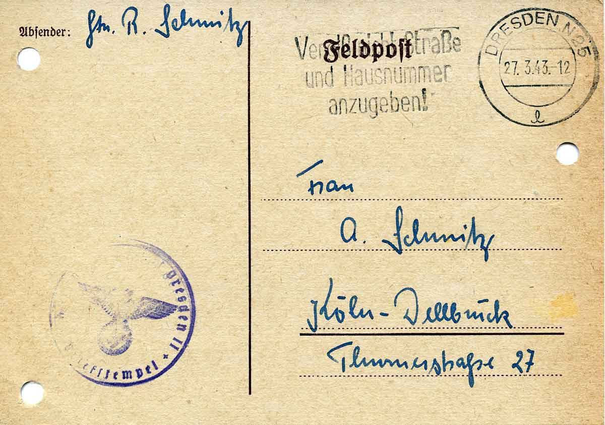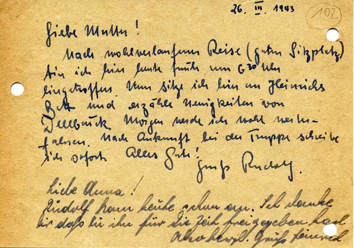 Rudolf Schmitz an Mutter Anna, 26. März 1943