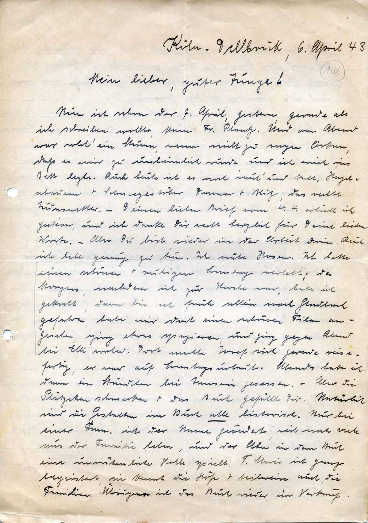 Anna Schmitz an ihren Sohn Rudolf, 6. April 1943