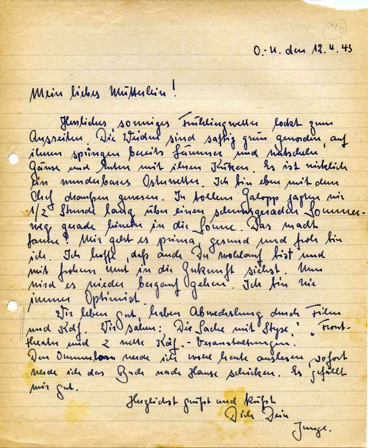 Rudolf Schmitz an Mutter Anna, 12. April 1943
