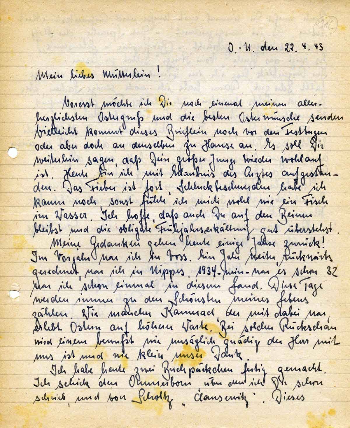 Rudolf Schmitz an Mutter Anna, 22. April 1943