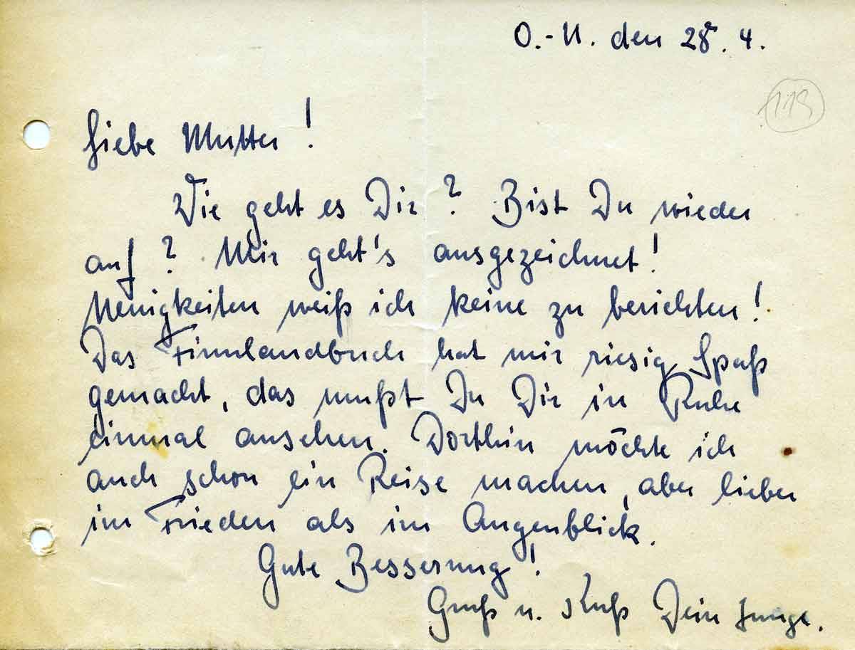 Rudolf Schmitz an Mutter Anna, 28. April 1943