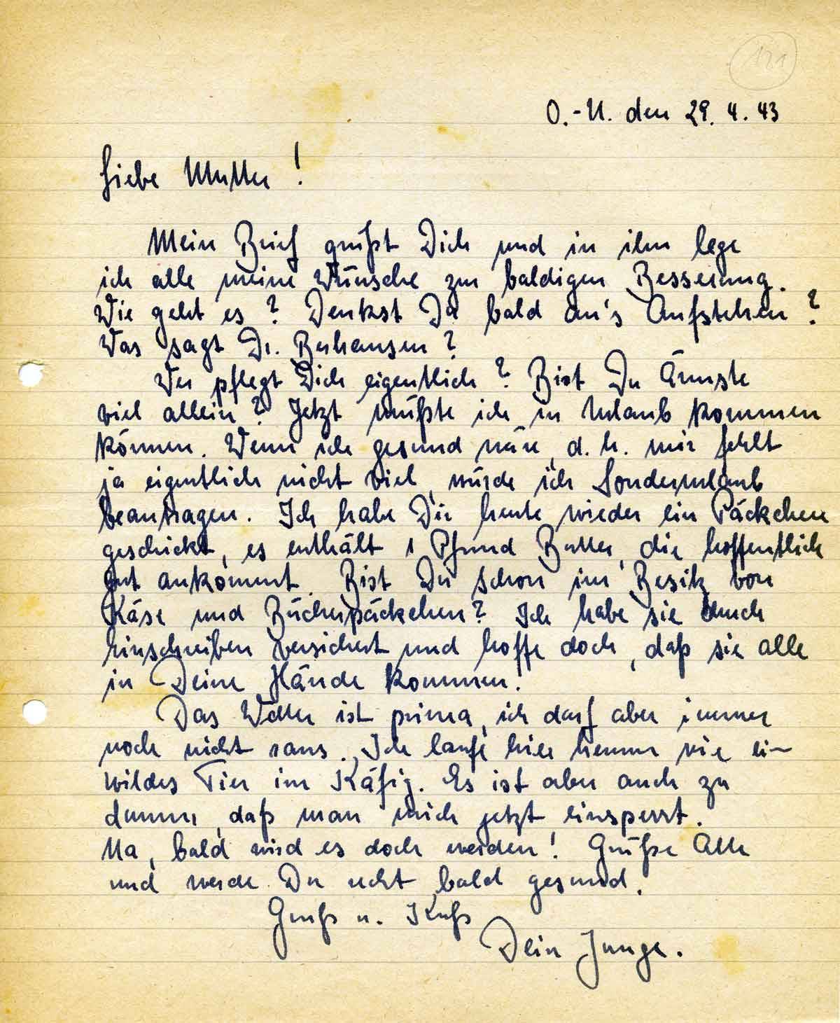 Rudolf Schmitz an Mutter Anna, 29. April 1943