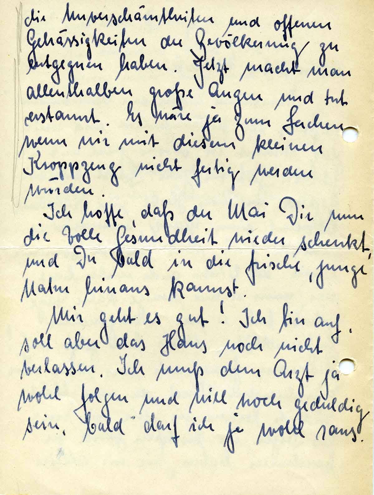 Ich hoffe, daß der Mai Dir nun die volle Gesundheit wieder schenkt, und Du bald in die frische, junge Natur hinaus kannst.