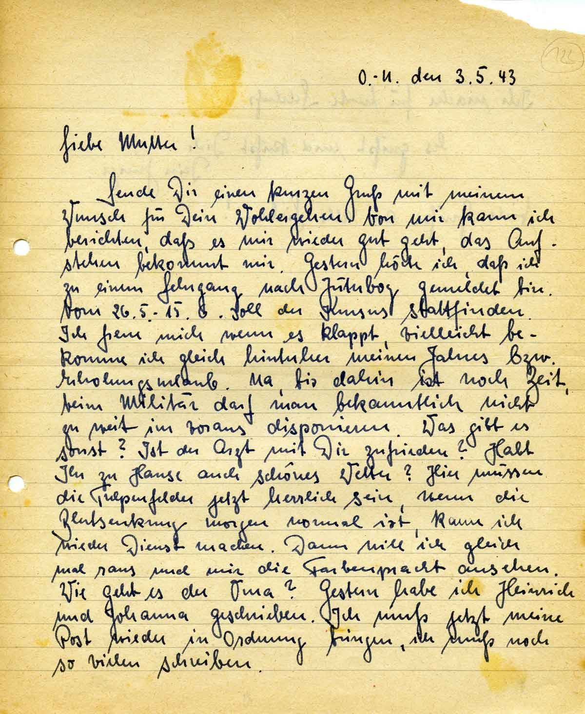 Rudolf Schmitz an Mutter Anna, 3. Mai 1943
