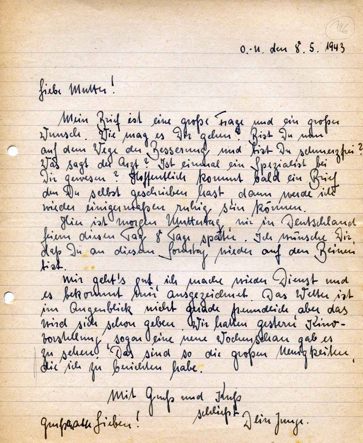Rudolf Schmitz an Mutter Anna, 8. Mai 1943
