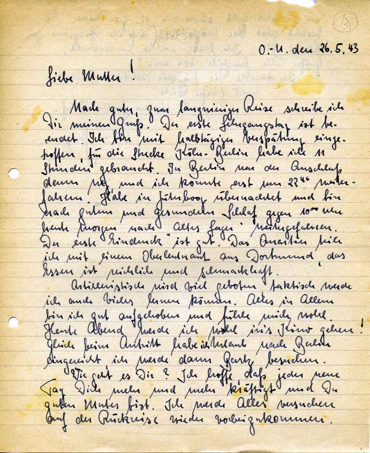Rudolf Schmitz an Mutter Anna, 26. Mai 1943