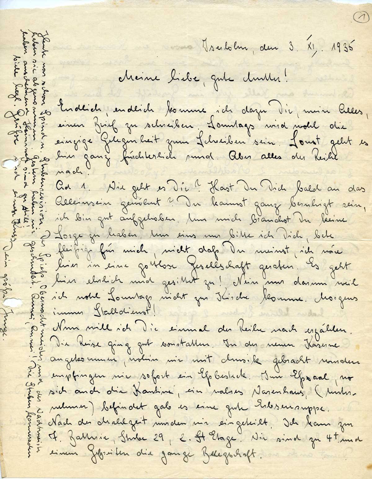 Rudolf Schmitz an Mutter Anna, 3. November 1935