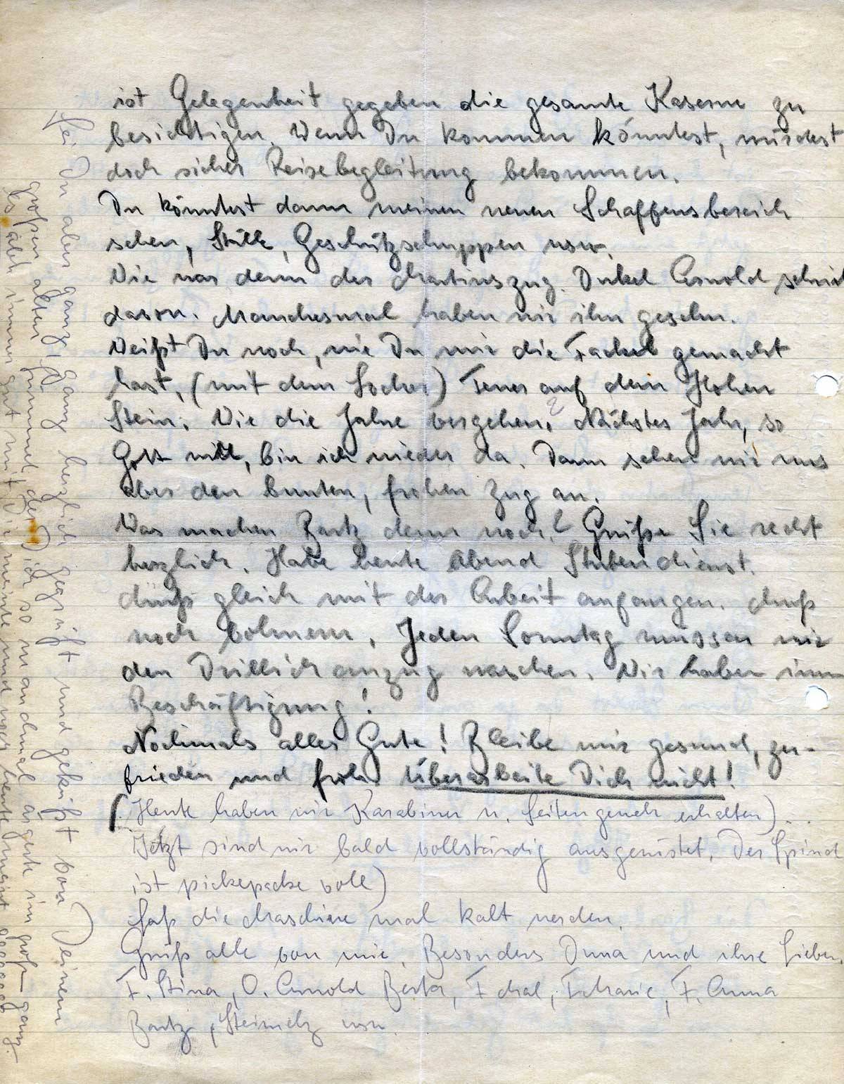 Grüß alle von mir. Besonders Oma und ihre Lieben. T. Stina, O. Arnold, Berta, T. Mal, T. Marie, T. Anna, Bartz, Steinmetz usw.