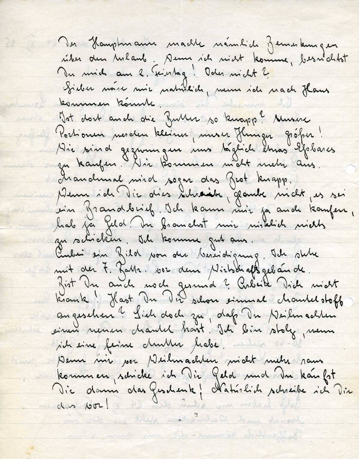 Ist dort auch die Butter so knapp? Unsere Portionen werden kleiner, unser Hunger größer! Wir sind gezwungen uns täglich etwas Eßbares zu kaufen. Wir kommen nicht mehr aus. Manchmal wird sogar das Brot knapp.
