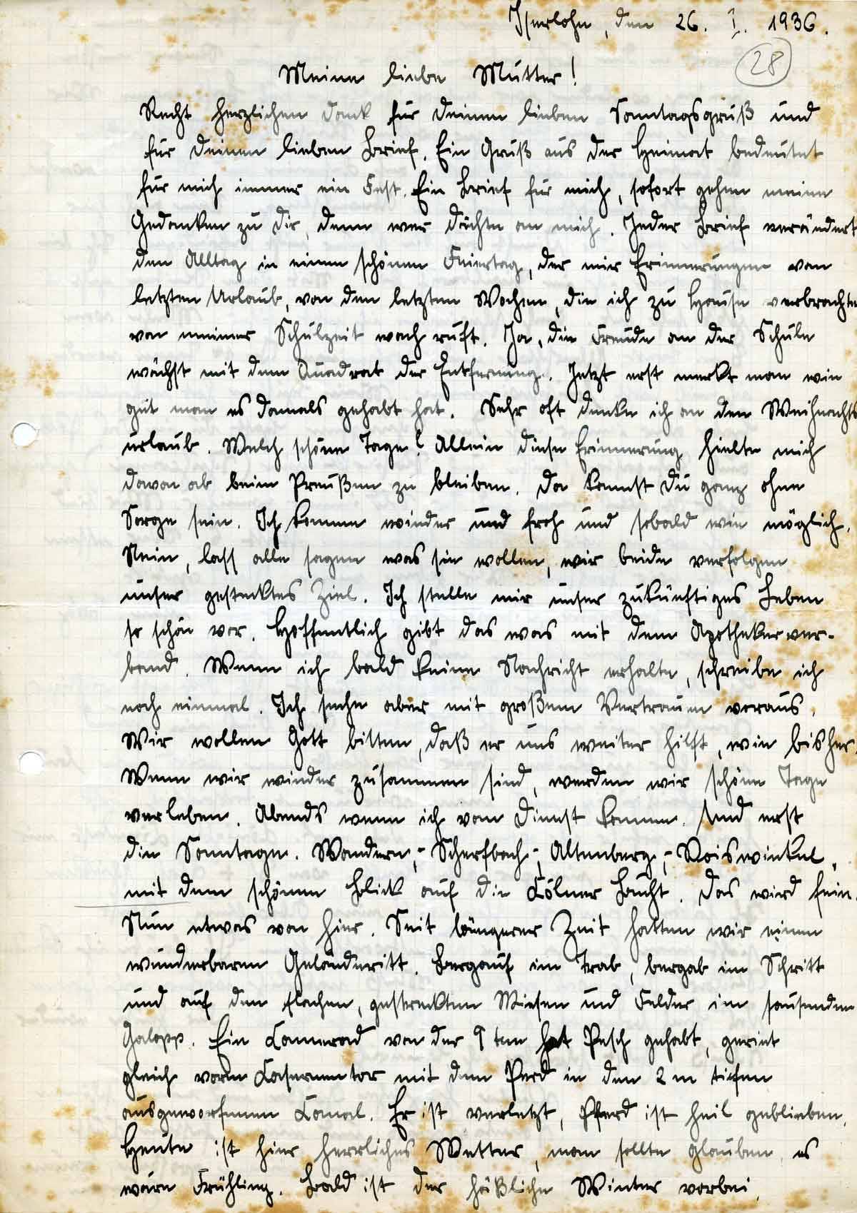 Rudolf Schmitz an Mutter Anna, 26. Januar 1936