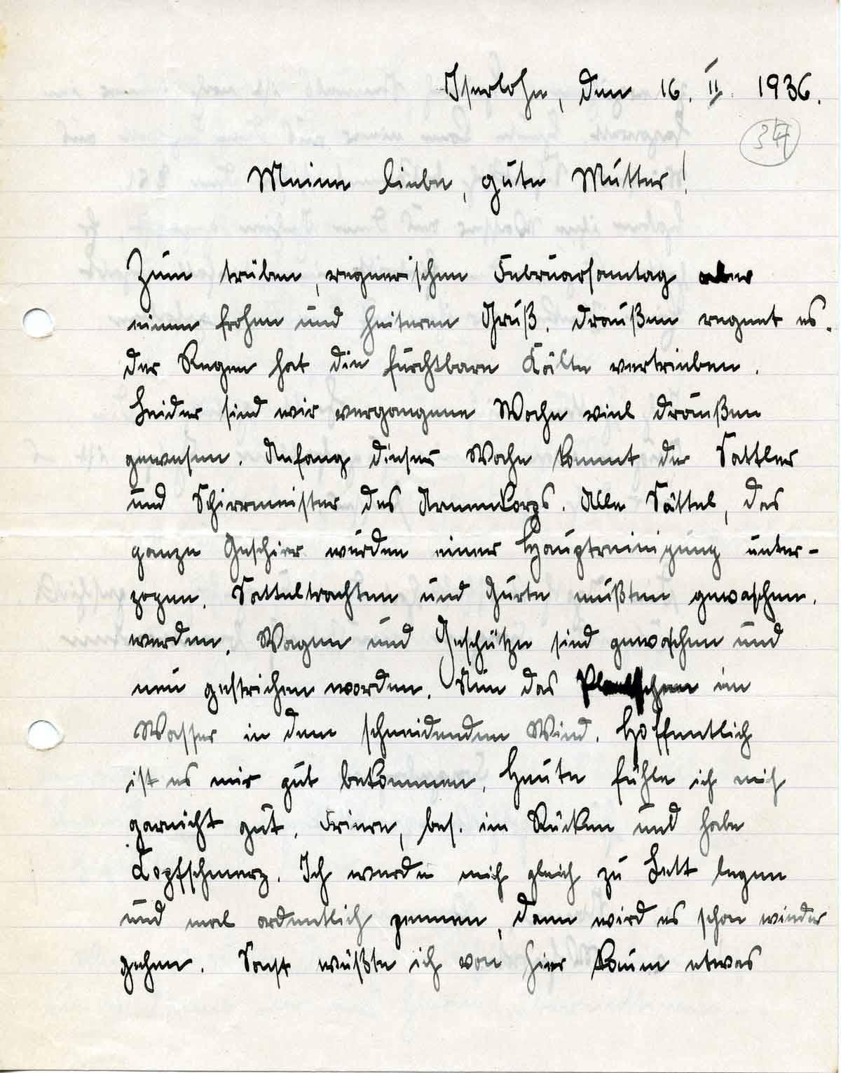 Rudolf Schmitz an Mutter Anna, 16. Februar 1936