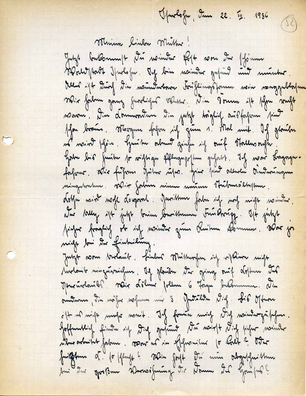 Rudolf Schmitz an Mutter Anna, 22. März 1936
