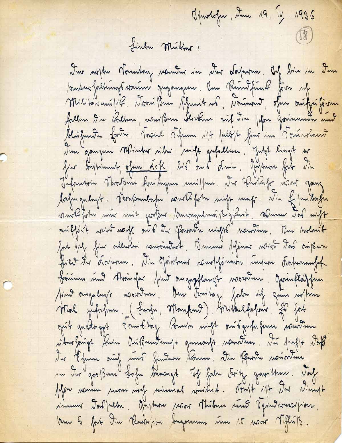 Rudolf Schmitz an Mutter Anna, 19. April 1936