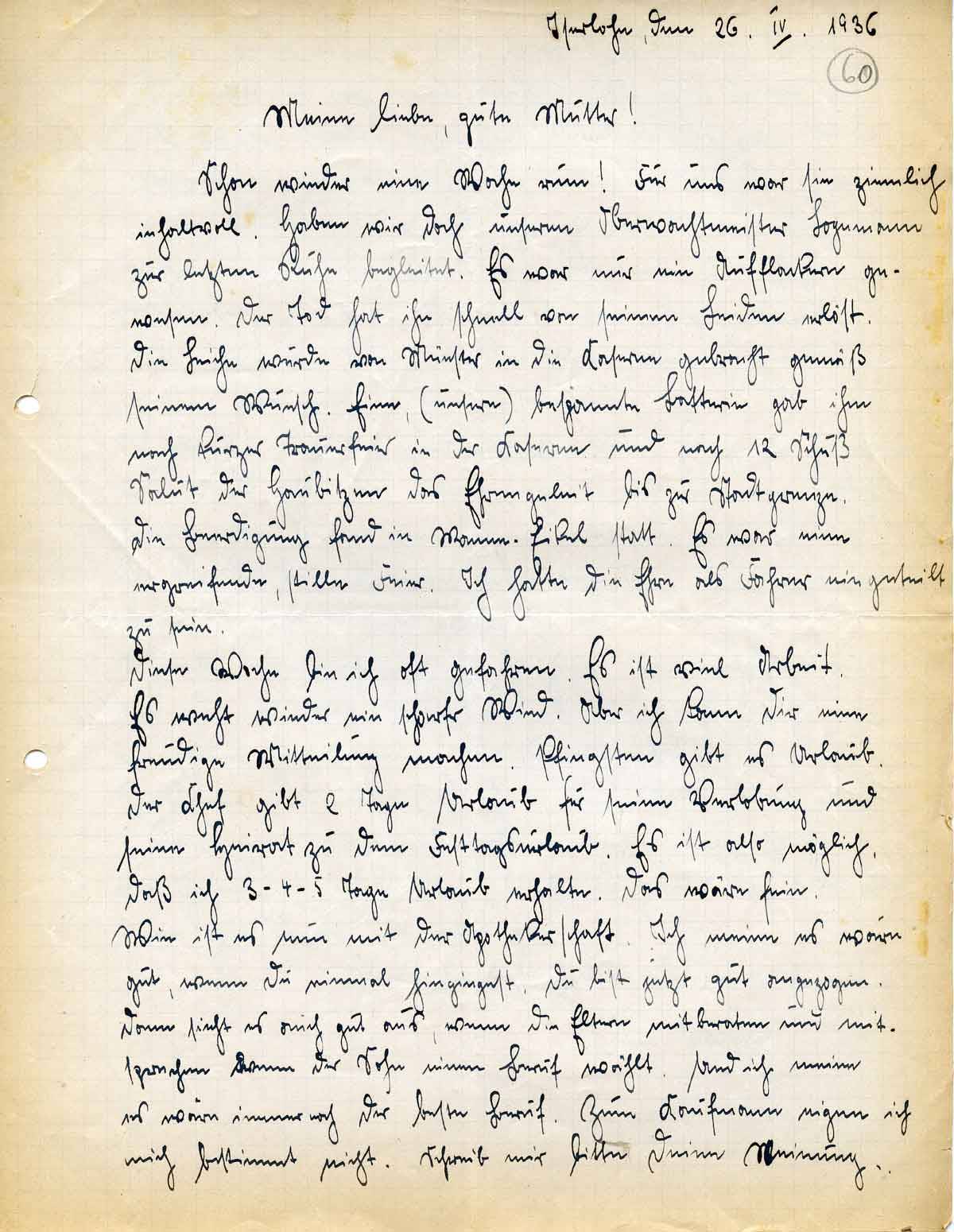 Rudolf Schmitz an Mutter Anna, 26. April 1936