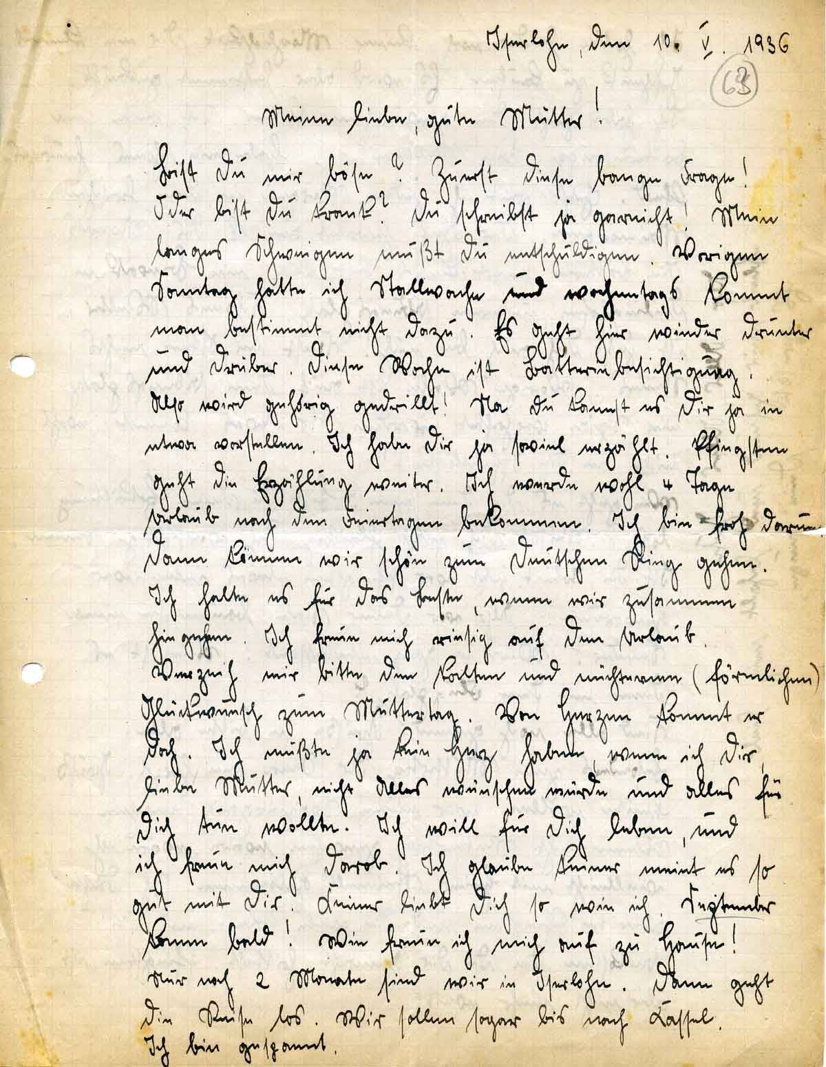 Rudolf Schmitz an Mutter Anna, 10. Mai 1936