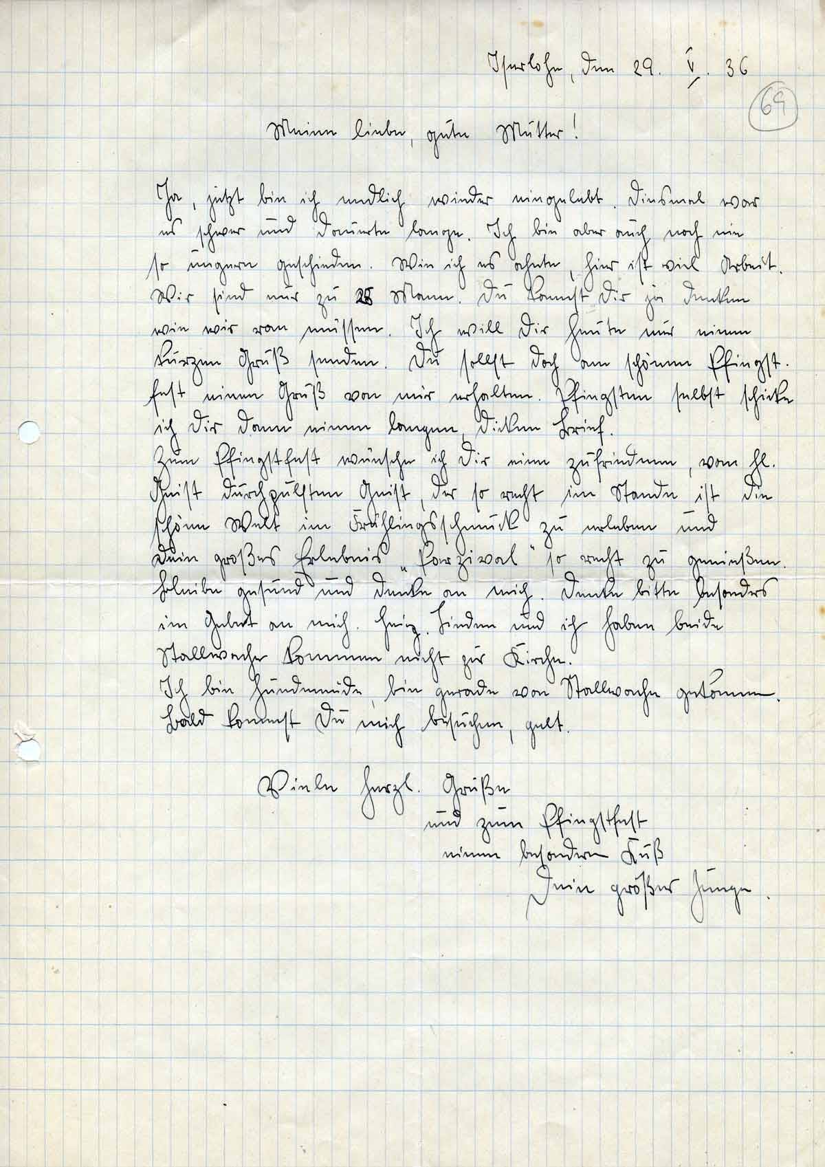 Rudolf Schmitz an Mutter Anna, 29. Mai 1936