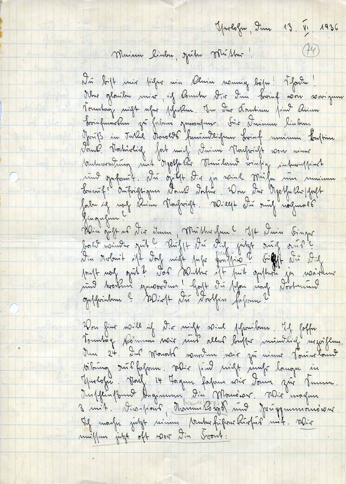Rudolf Schmitz an Mutter Anna, 13. Juni 1936