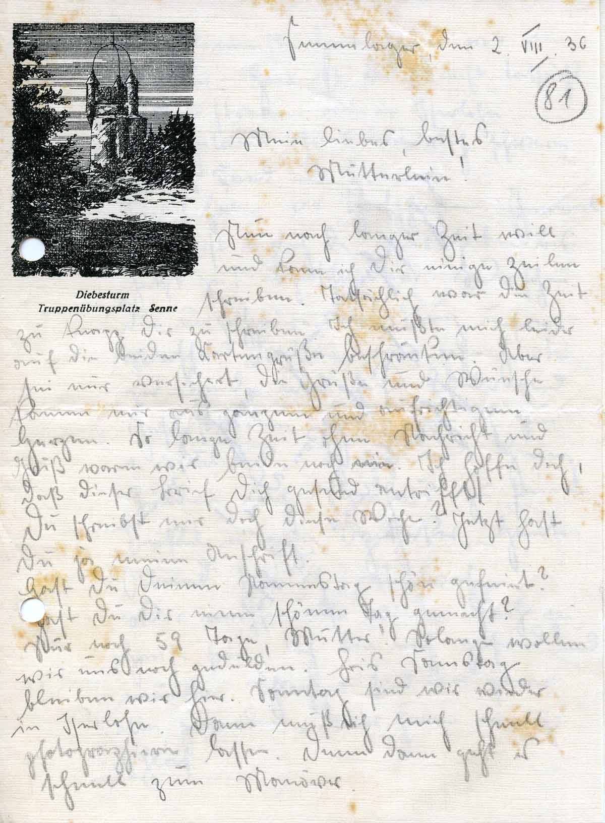 Rudolf Schmitz an Mutter Anna, 2. August 1936
