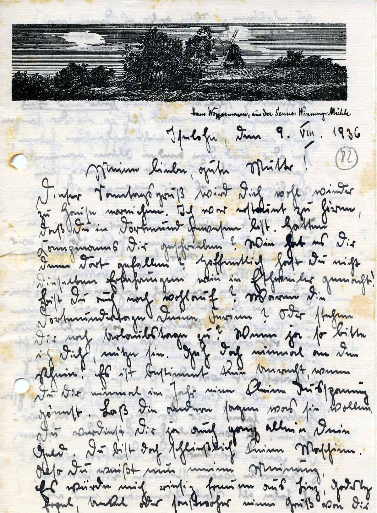 Rudolf Schmitz an Mutter Anna, 9. August 1936