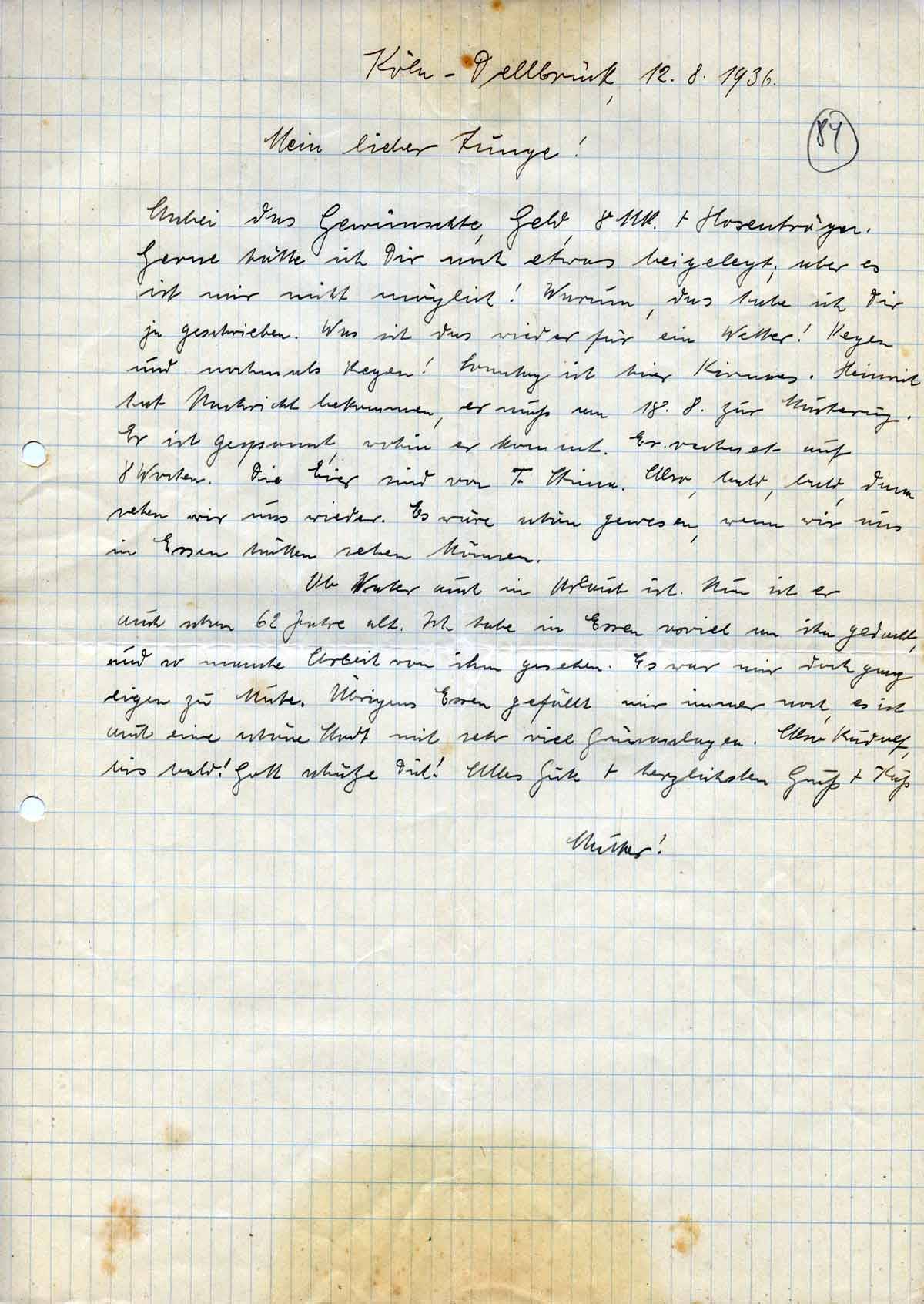 Anna Schmitz an Sohn Rudolf, 12. August 1936