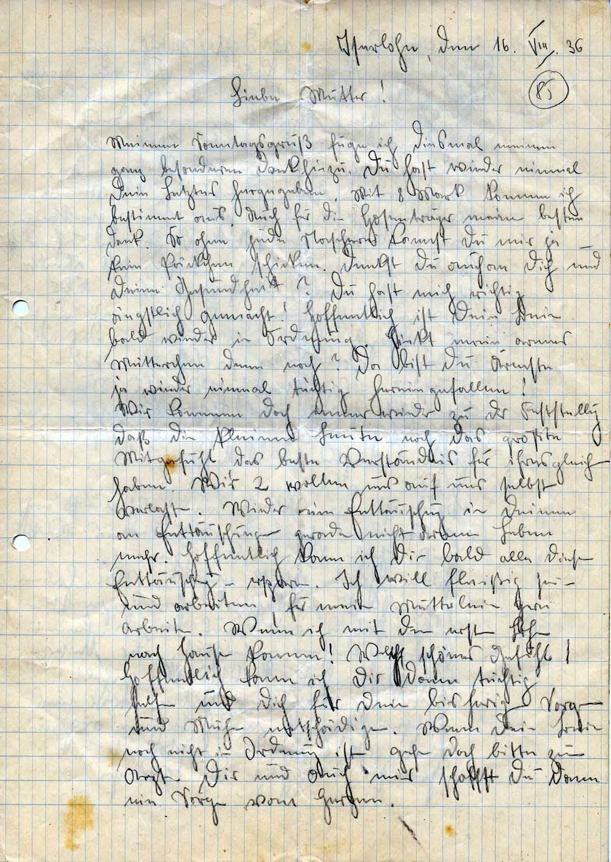 Rudolf Schmitz an Mutter Anna, 16. August 1936