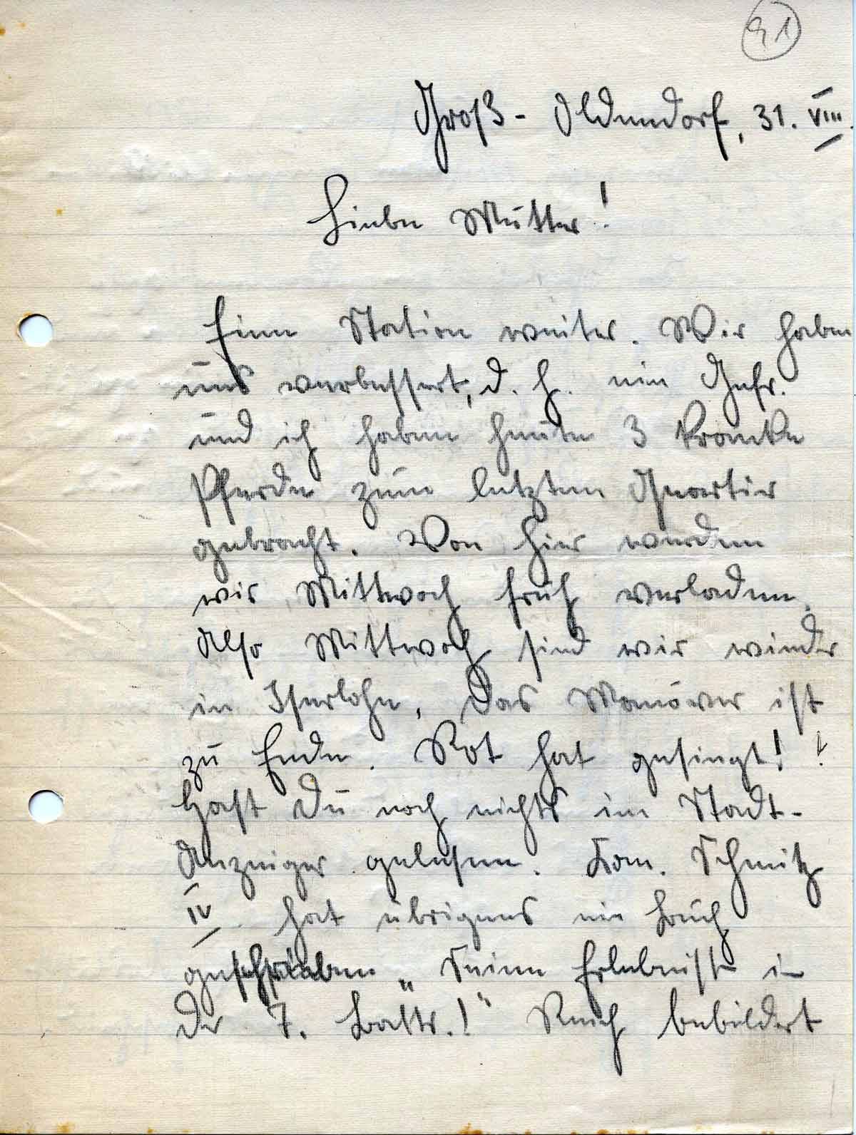 Rudolf Schmitz an Mutter Anna, 31. August 1936