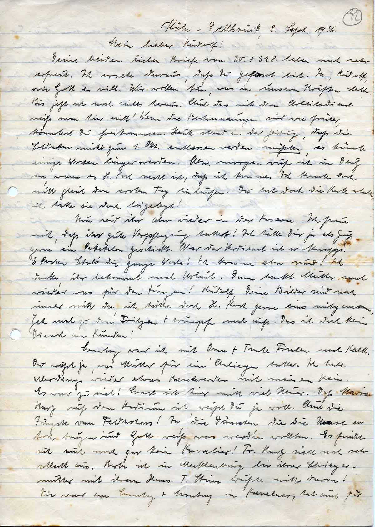 Anna Schmitz an Sohn Rudolf, 2. September 1936