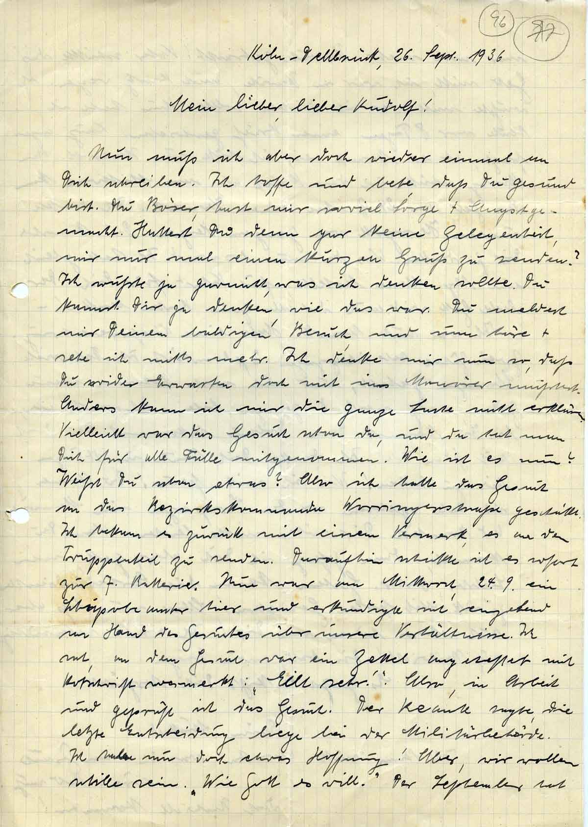 Anna Schmitz an Sohn Rudolf, 26. September 1936