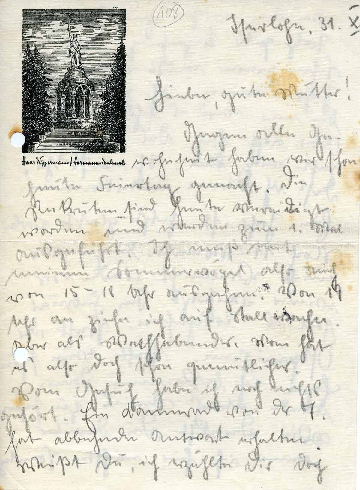 Rudolf Schmitz an Mutter Anna, 31. Oktober 1936