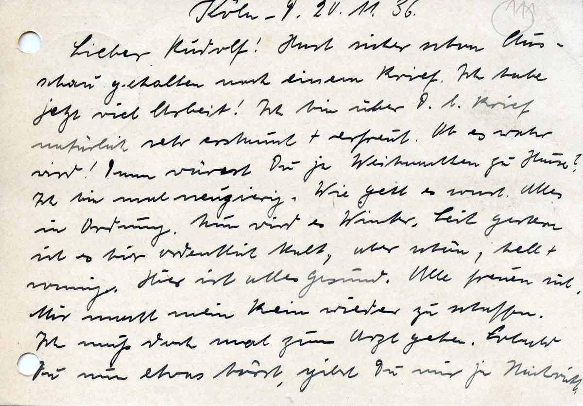 Anna Schmitz an Sohn Rudolf, 20. November 1936