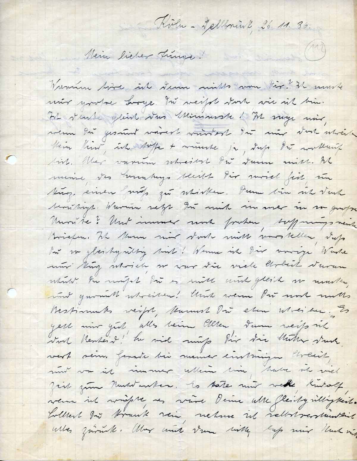 Anna Schmitz an Sohn Rudolf, 26. November 1936