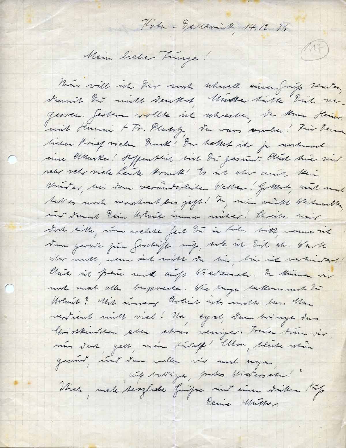 Anna Schmitz an Sohn Rudolf, 14. Dezember 1936
