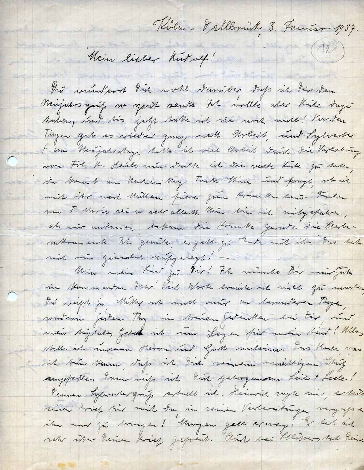 Anna Schmitz an Sohn Rudolf, 3. Januar 1937