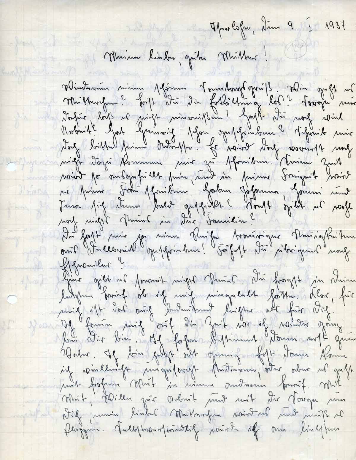 Rudolf Schmitz an Mutter Anna, 9. Januar 1937