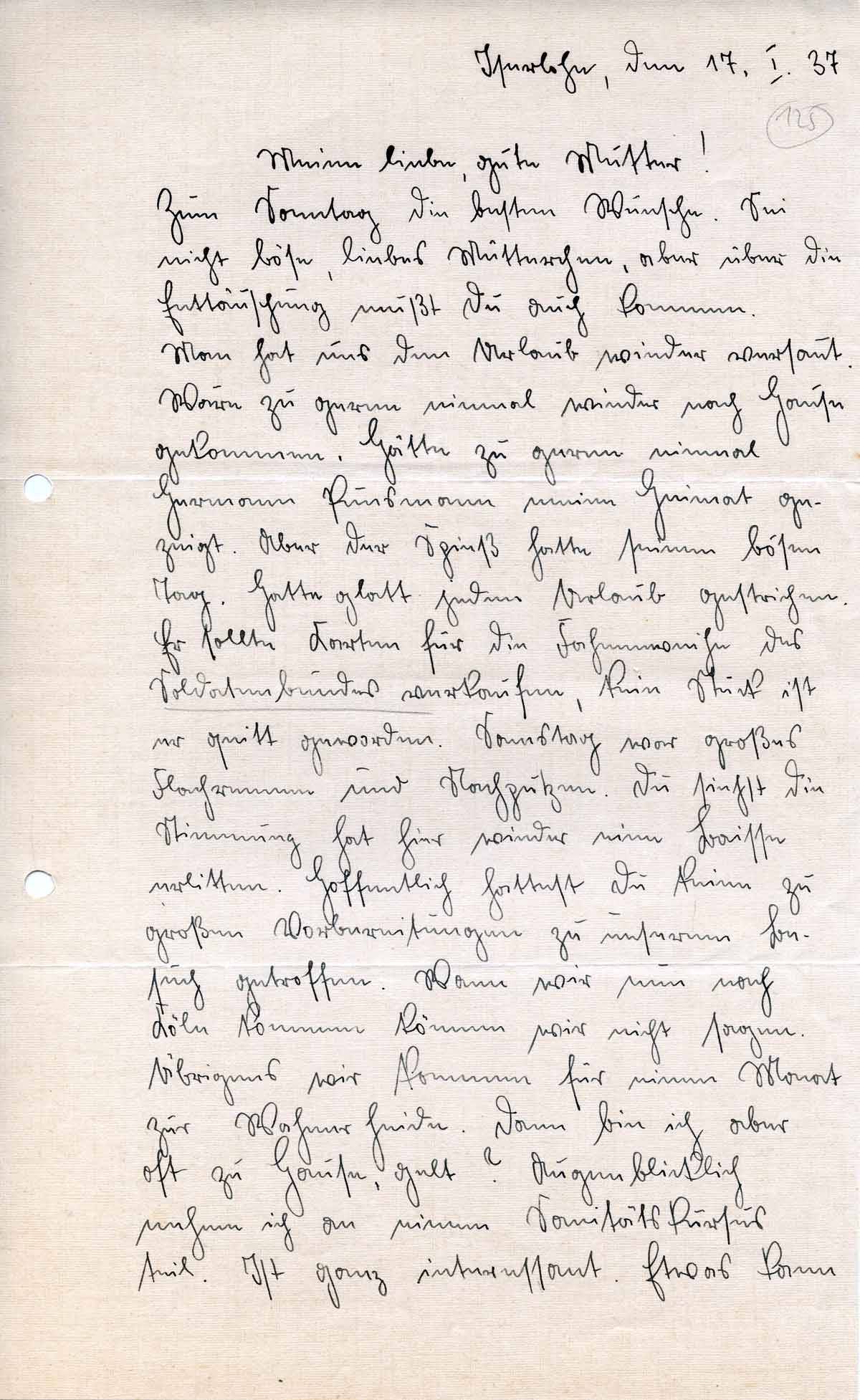 Rudolf Schmitz an Mutter Anna, 17. Januar 1937