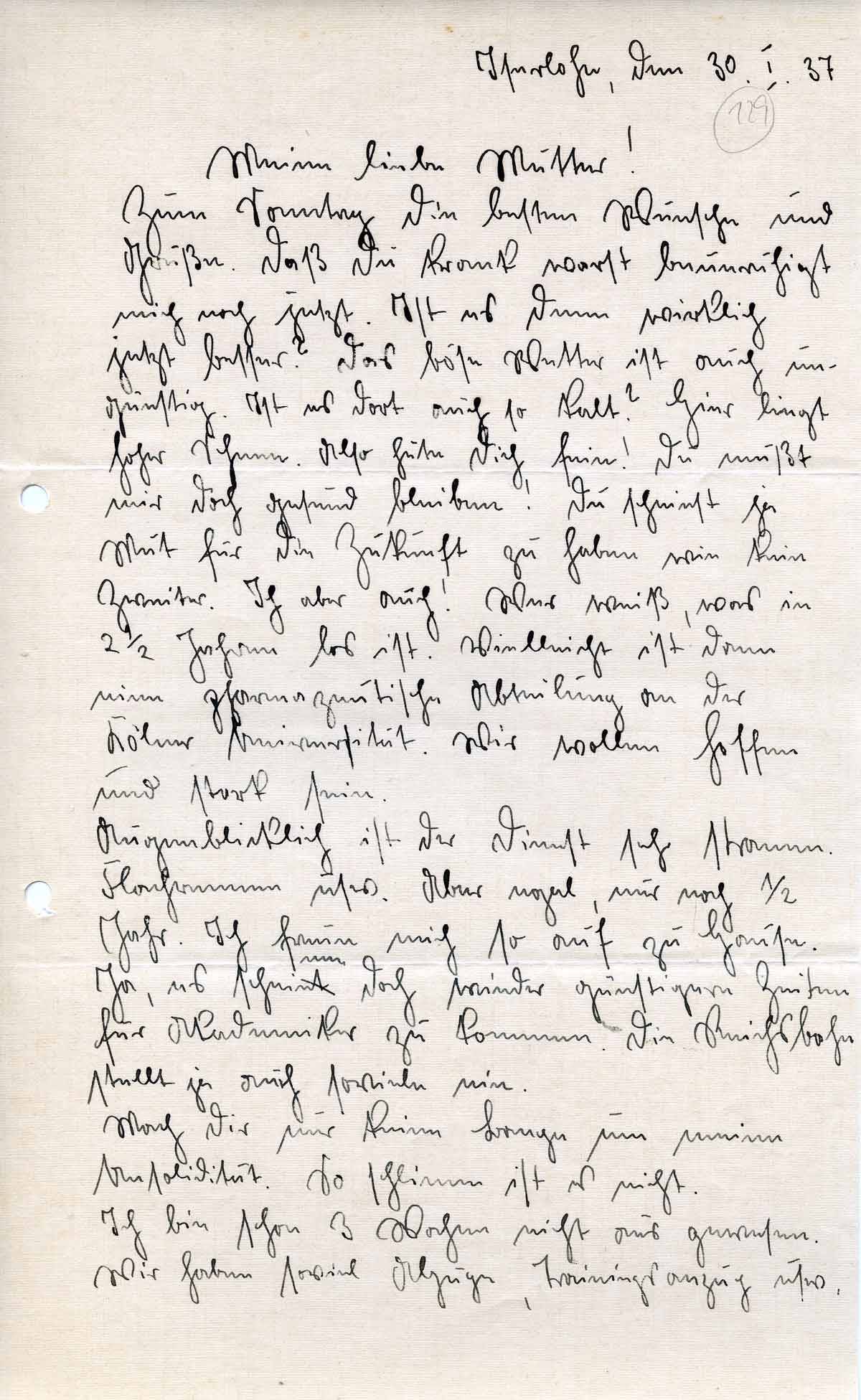 Rudolf Schmitz an Mutter Anna, 30. Januar 1937