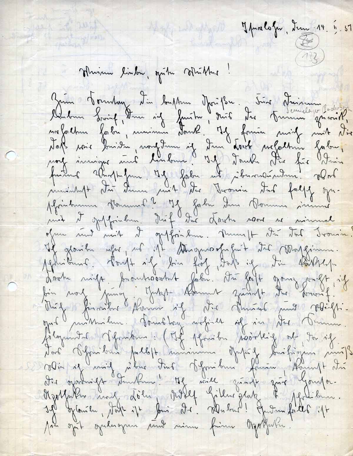 Rudolf Schmitz an Mutter Anna, 14. Februar 1937