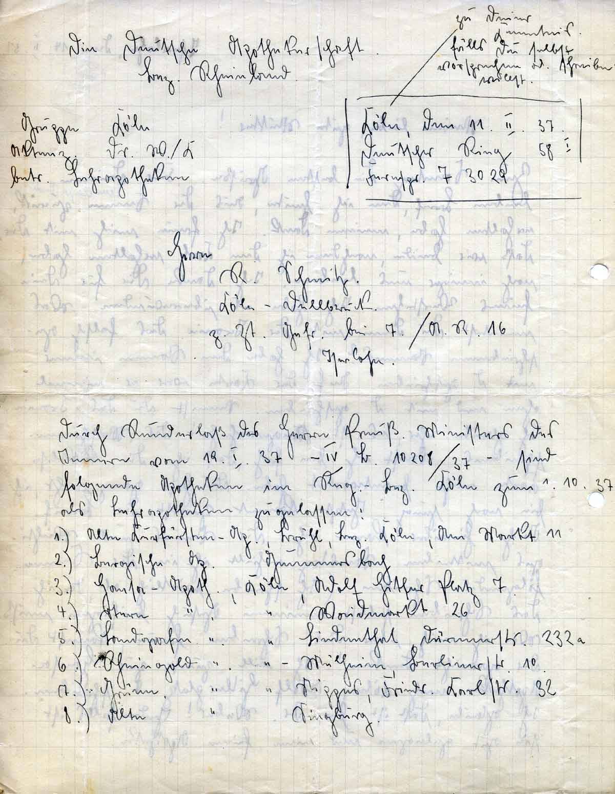 Durch Runderlaß des Herrn Preuß. Ministers des Innern vom 19. I. 37 – IV B. 10208/37 – sind folgende Apotheken im Reg.-Bez. Köln zum 1. 10. 37 als Lehrapotheken zugelassen: