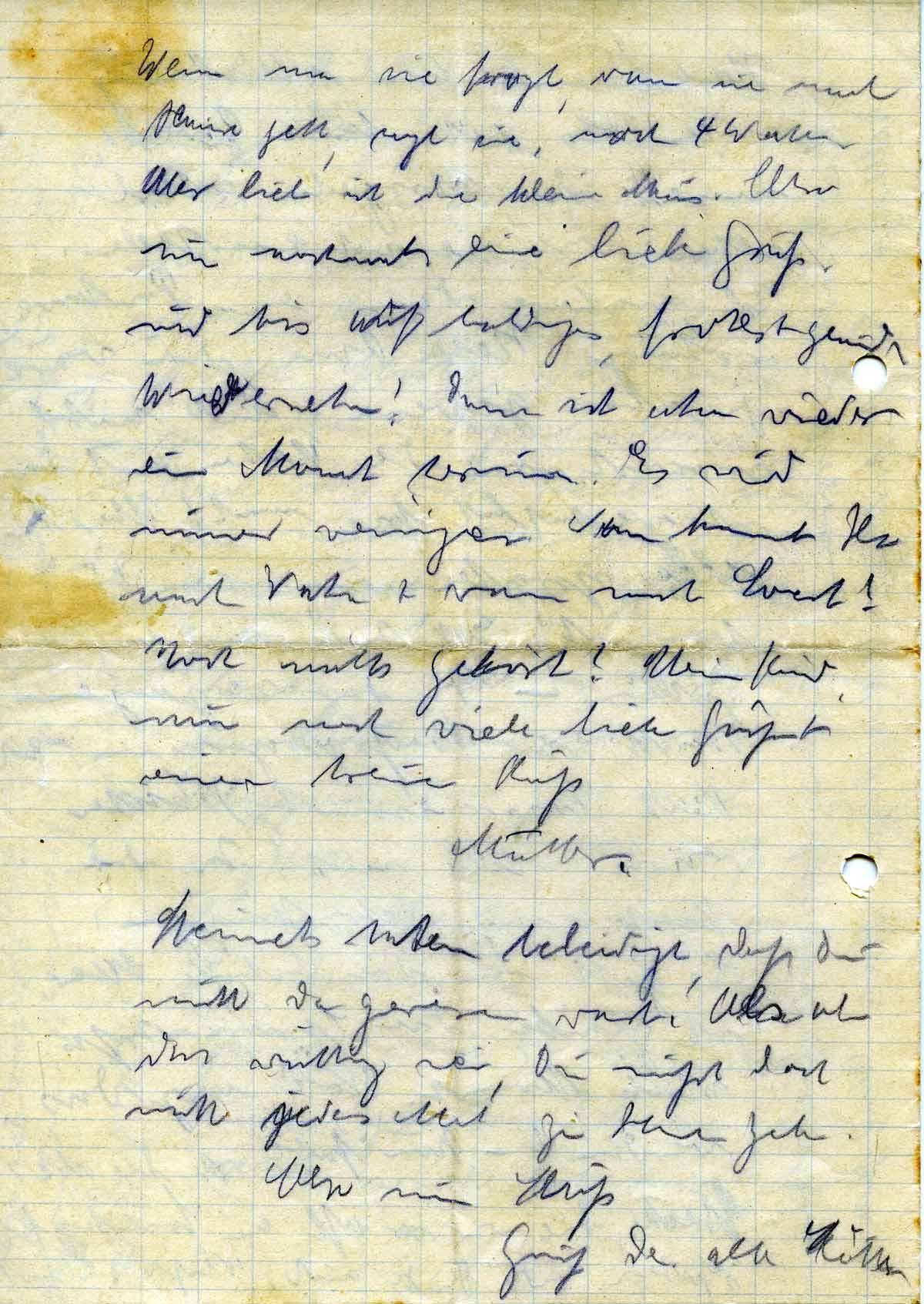 Also nun Schluß. Gruß der alten Mutter.