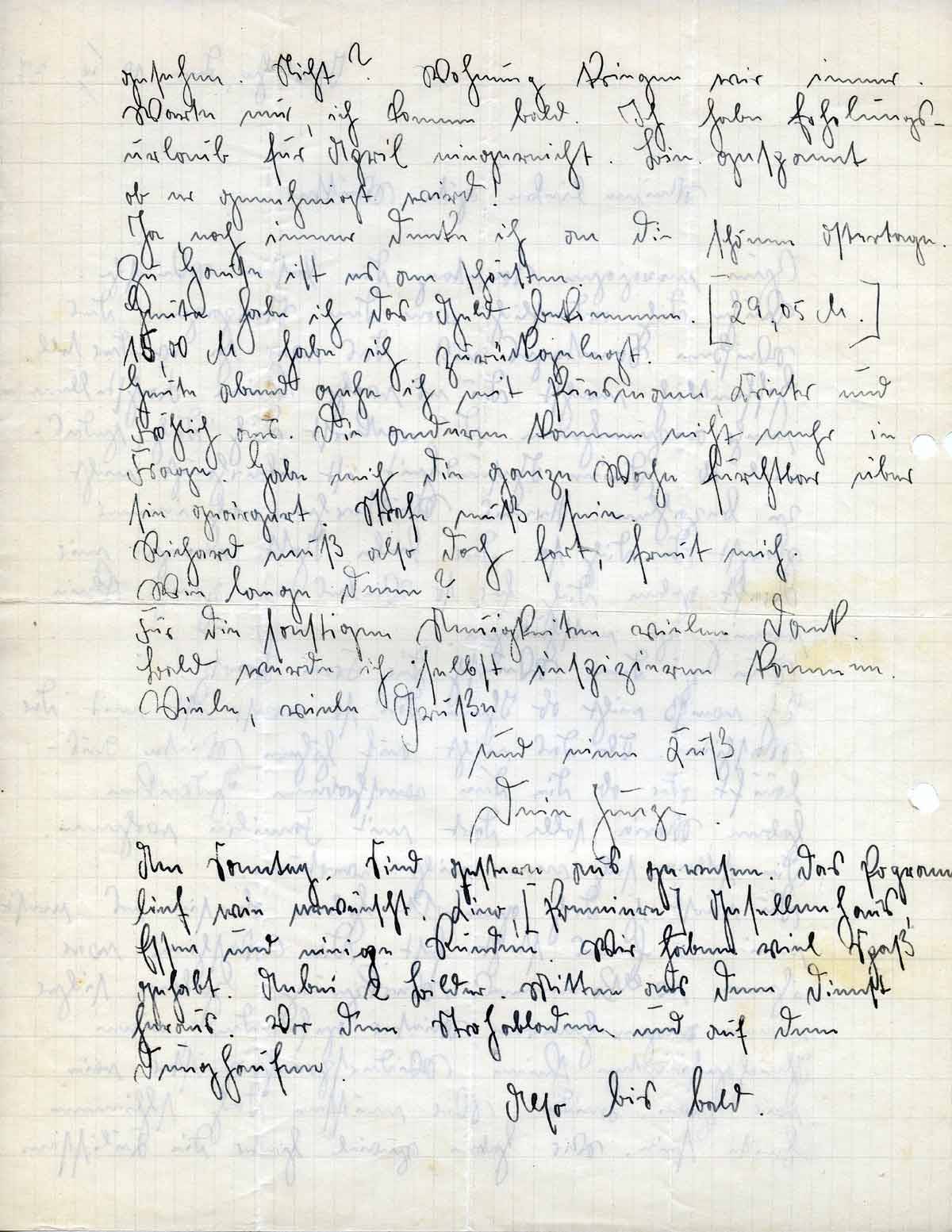 Zum morgigen Sonntag die besten Wünsche. Ruhe Dich ordentlich von den Strapazen des Weißen Sonntages aus. Das war ja wieder toll. Hoffentlich machst Du es wahr keine Kochstelle mehr anzunehmen. Du rackerst Dich doch jedes Mal ab. Deine Gesundheit ist überhaupt nicht zu bezahlen. Armes Mütterchen noch immer plagst Du Dich so. Der liebe Gott möge mir Kraft geben Dich für so Vieles ein ganz klein wenig zu entschädigen.