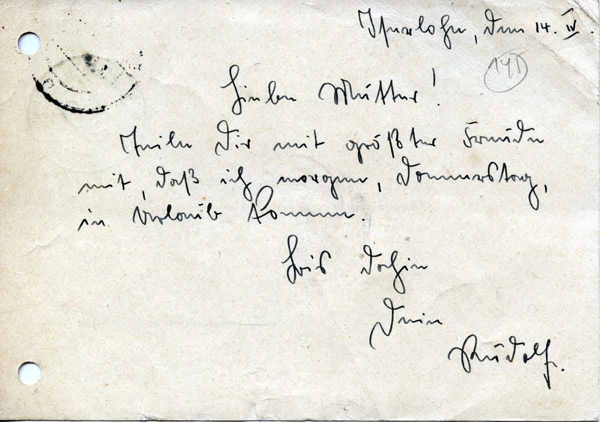 Rudolf Schmitz an Mutter Anna, 14. April 1937