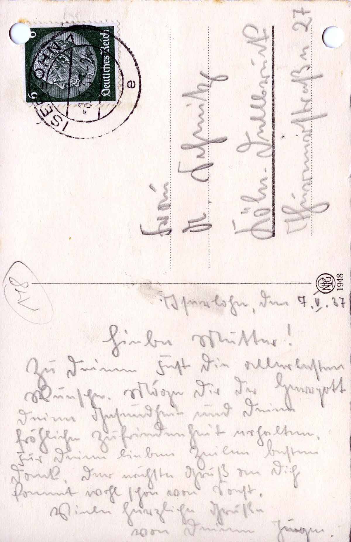 Rudolf Schmitz an Mutter Anna, 7. Mai 1937