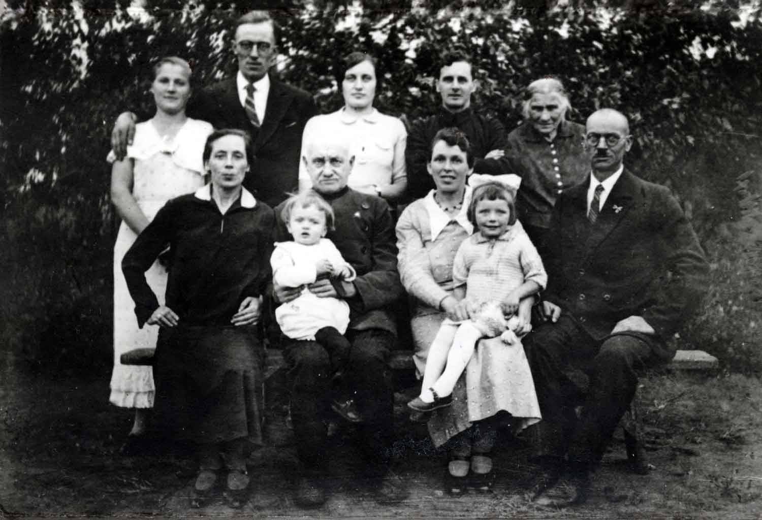 Die vier kommen im zehn Kilometer von Danzig entfernt liegenden Praust bei der Schwester der Mutter unter. Sie hat dort neu gebaut und kann die vier Tomaschewskis aufnehmen. Doch bald ereilt die Familie der nächste Schicksalsschlag, denn auch die Tante stirbt. In dieser dramatischen Situation entschließen sich Charlottes Mutter und ihr nunmehr ebenfalls verwitweter Onkel – von Beruf Postbeamter - eine gemeinsame Ehe einzugehen. „Aus meinem Onkel wurde dann mein Stiefvater.“ 1938 wird die Familie durch die Geburt einer Schwester vergrößert. In dieser Konstellation durchlebt die Familie auch den Krieg, bis der fast 60-jährige Stiefvater kurz vor Kriegsende noch zum Volkssturm eingezogen wird. „Und dadurch sind wir auseinander gekommen.“