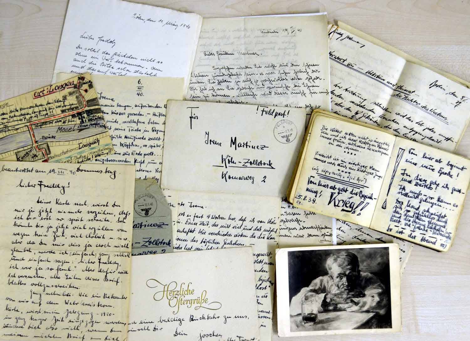 Umso wichtiger wurde für die jungen Katholik*innen gegenseitige Selbstversicherung, die kriegsbedingt allerdings nicht mehr in vertrauten Gruppentreffen, sondern in aller Regel über große räumliche Entfernungen erfolgen musste. Damit wurden insbesondere (Feldpost-) Briefe zum „gemeinsamen Band“ untereinander. In Ihnen teilte man sich – allerdings unter Beachtung einer stets möglichen Briefzensur - alles Wesentliche mit, diskutierte und plante, traf Verabredungen für den nächsten „Heimaturlaub“ oder schmiedete Pläne für die Zeit nach dem Krieg. So erlebte und durchlitt man – sozusagen „zeitversetzt gemeinsam“ – die stetig eskalierenden Bedingungen des Kriegsalltags an Fronten und „Heimatfront“.
