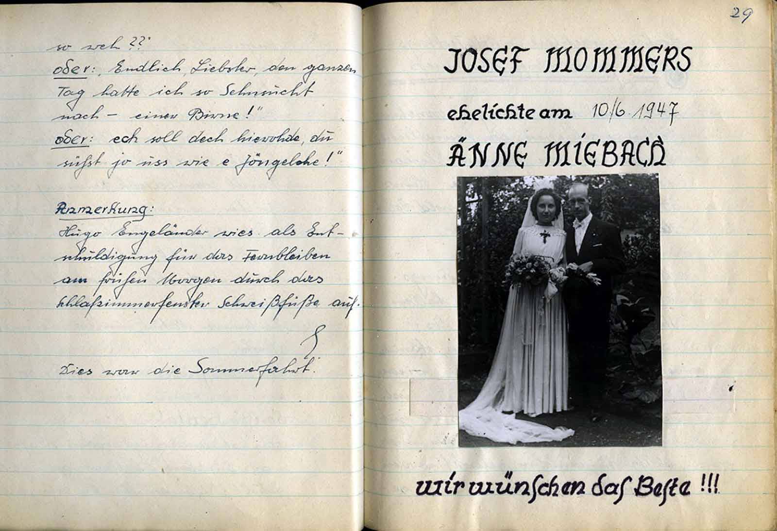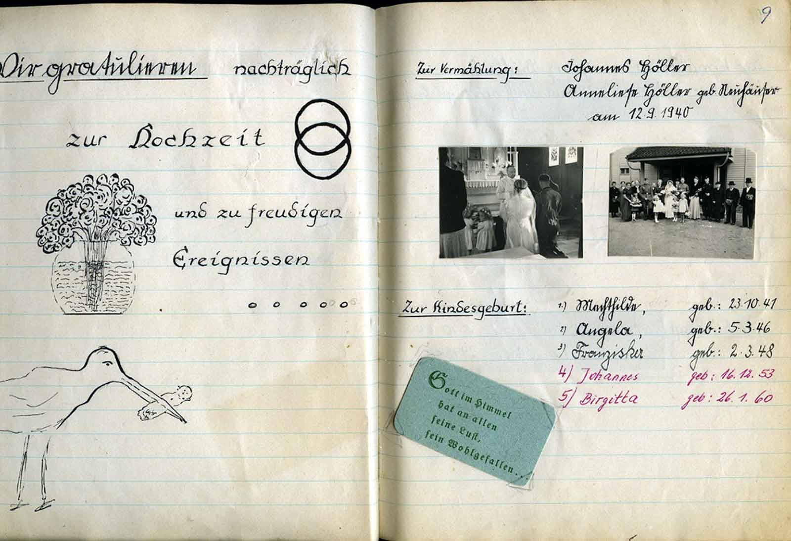 Geplant war es, diese Feier bei Johannes Höller stattfinden zu lassen. Doch es kam anders. Die drei munteren Töchterchen unseres Johannes waren an diesem Tage bettlägerig krank. So ging man ein paar Häuser weiter zur Familie Neuhäuser,