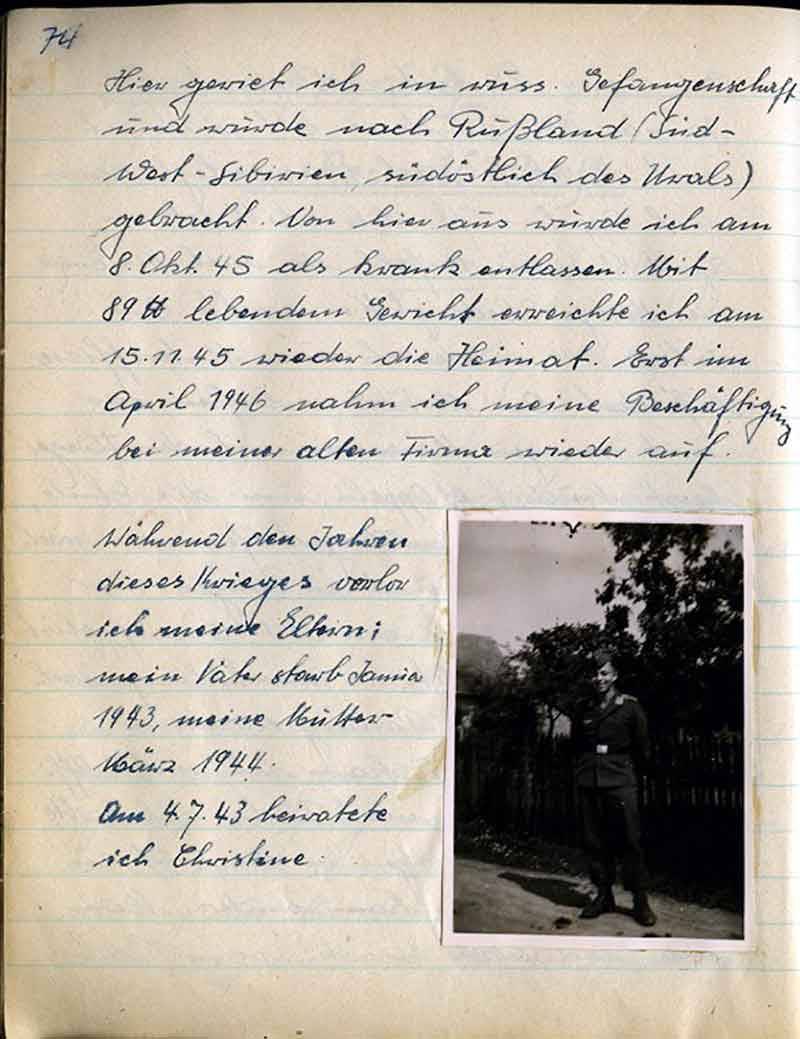 Einberufung zum Heer und der große Krieg ließ uns trennen, die Verbundenheit durch Briefe und Gedanken gingen hin und her, zu