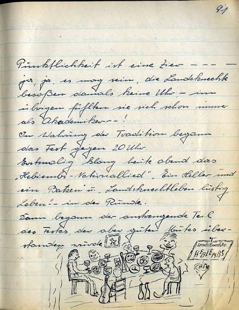 Erstmalig klang heute abend das „Hebiembs-Nationallied“ „Ein Heller und ein Batzen „ u. „Landsknechtleben lustig leben“ - in der Runde.